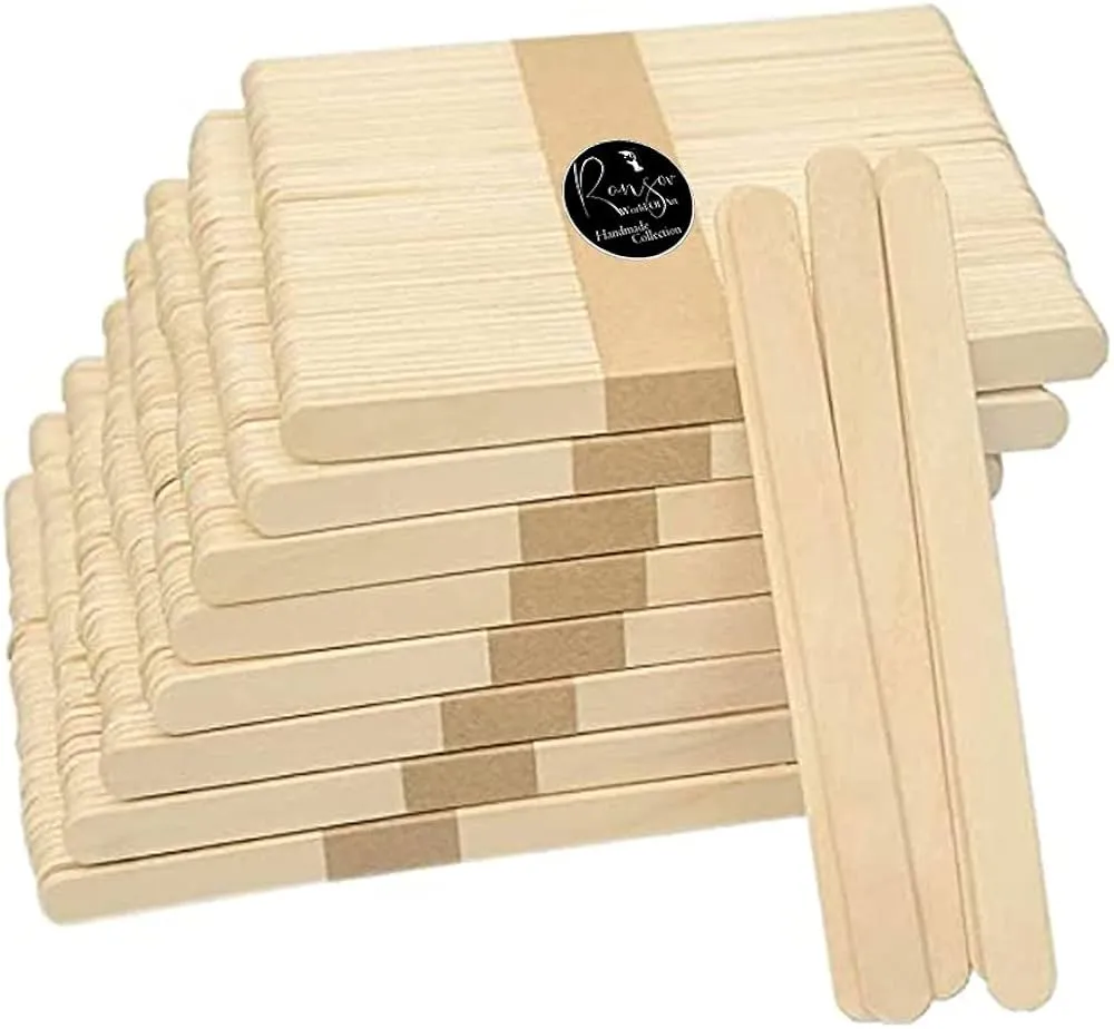 The wooden popsicle sticks can be used for multiple applications like ice cream making tools,party crafts,dessert making,candle wicks,student art projects and home decoration,can be also for resin stir sticks,waxing sticks,stirring sticks for drinks,craft popsicle sticks and paint stir sticks.
